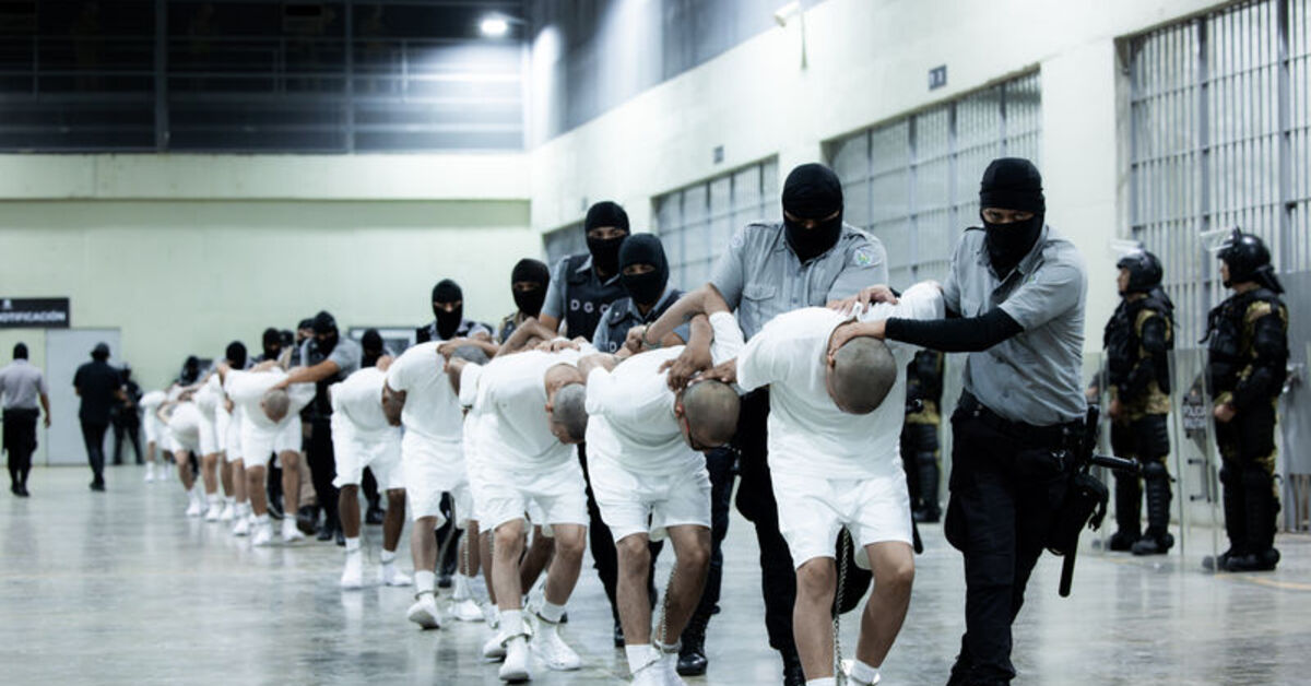 ABD’nin yıllık ücret ödeyerek El Salvador’a gönderdiği çete üyeleri, Tecoluca kentinde yer alan Terör Muhafaza Merkezine (CECOT) yerleştirildi.